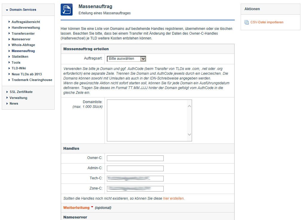 Nachträgliche Änderungen oder Transfers/Bestellungen können am Webfrontend per Massenauftrag neben der SOAP Schnittstelle komfortabel und einfach umgesetzt werden.
